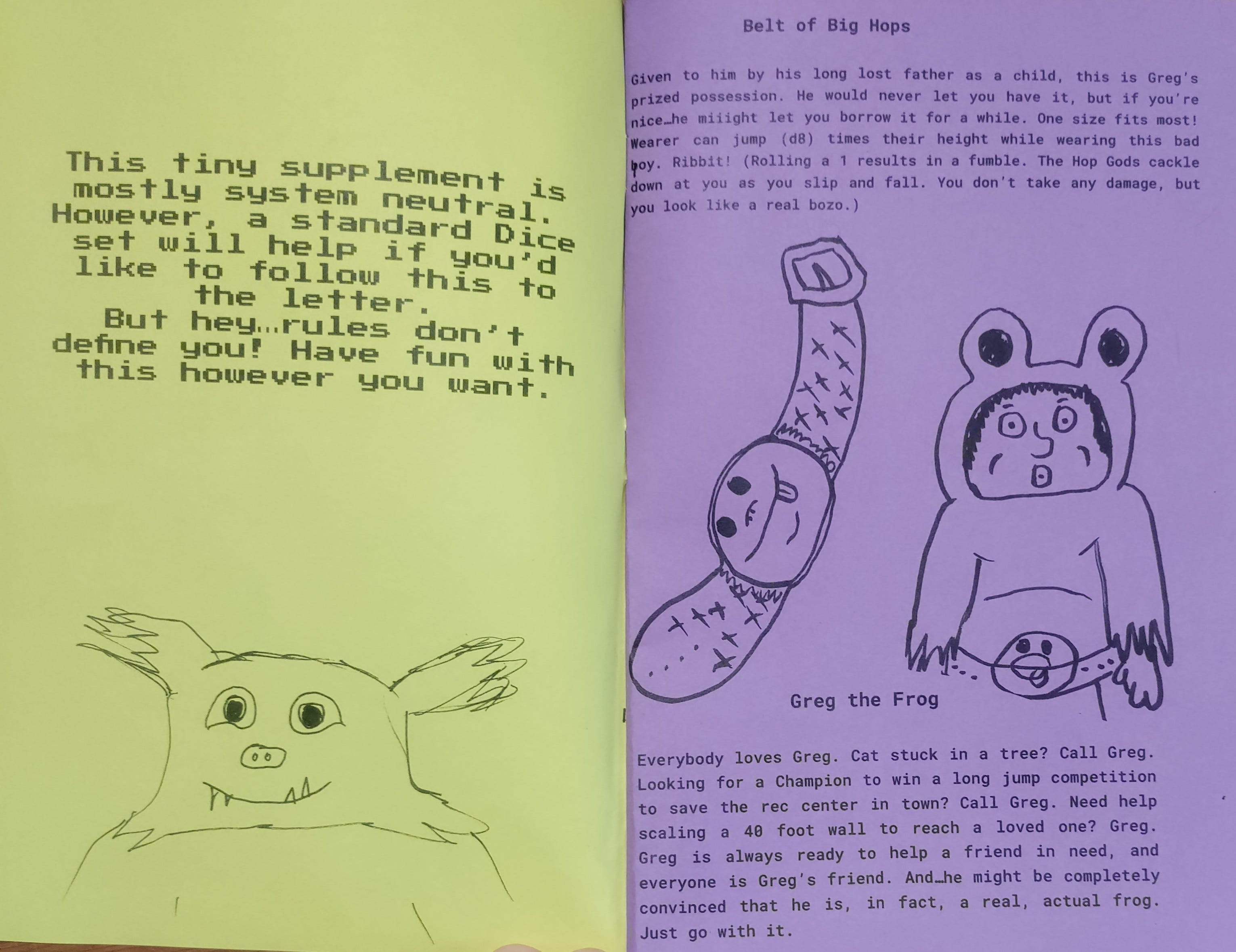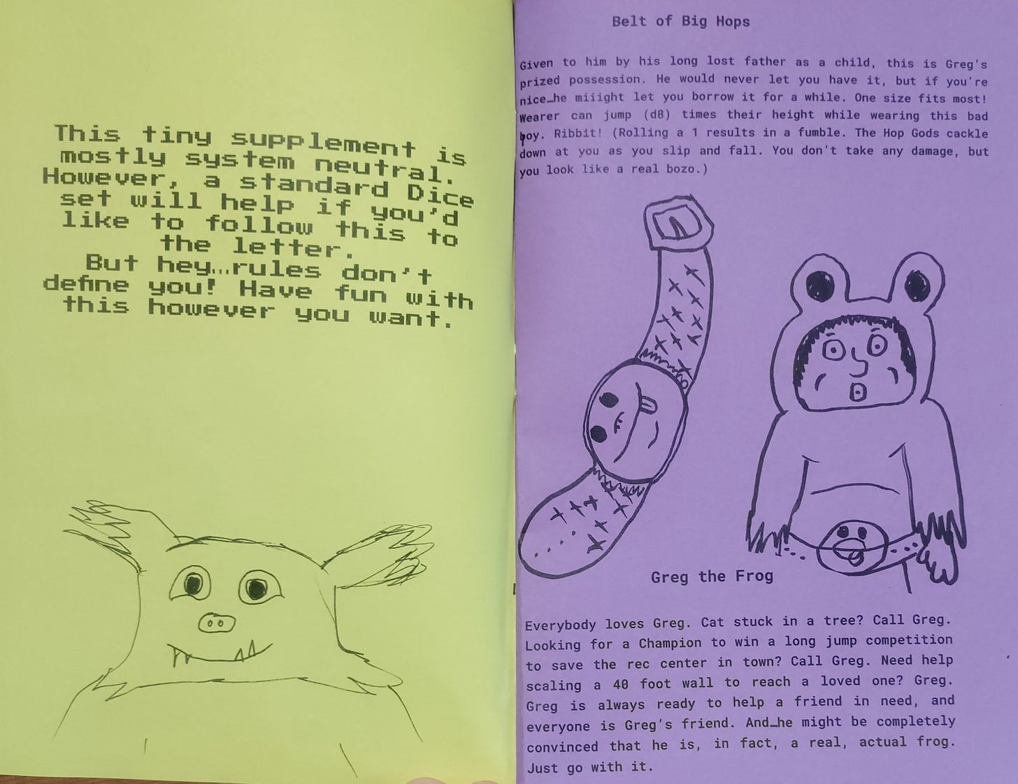 It’s a dead simple system with a vibe that can appeal to kids (and maybe even my non-TTRPG-playing wife) and has that OSR/NSR attitude. Plus the art is just gorgeous.