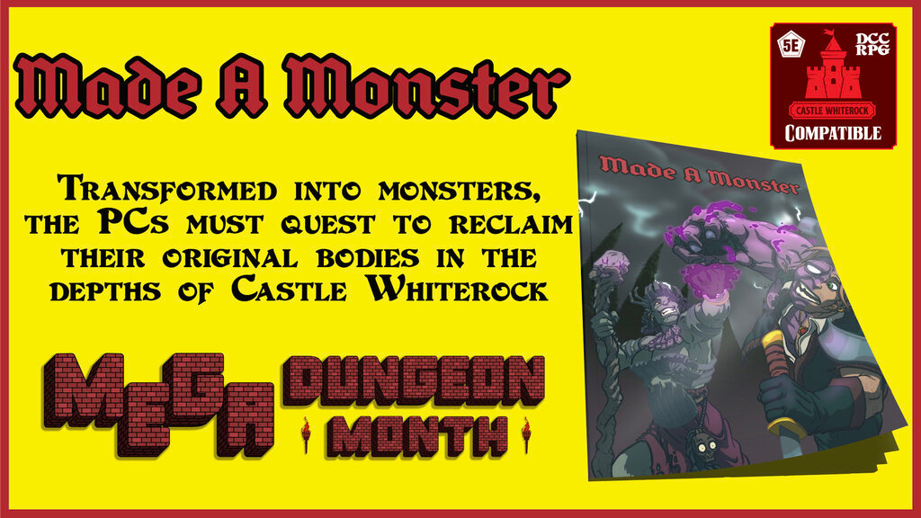 When an orc shaman botches an evil ritual, the PCs’ bodies are transformed into monstrous forms! They must quest to return themselves to their original form before they lose their minds as well! Made A Monster plugs right into Castle Whiterock and turns combat encounters into espionage opportunities.